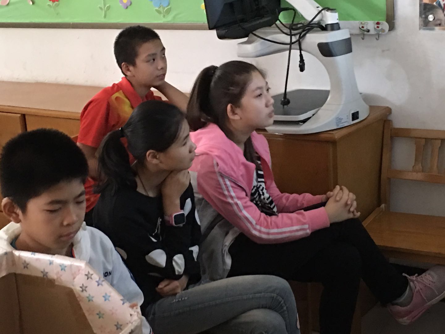 2017年9月27日下午,特教学校盲班的孩子们围坐在一起,焦急地等待着秦皇岛图书馆志愿者叔叔阿姨们的到来。因为马卓老师告诉他们,图书馆的志愿者会如约带来他们喜欢的无障碍电影。