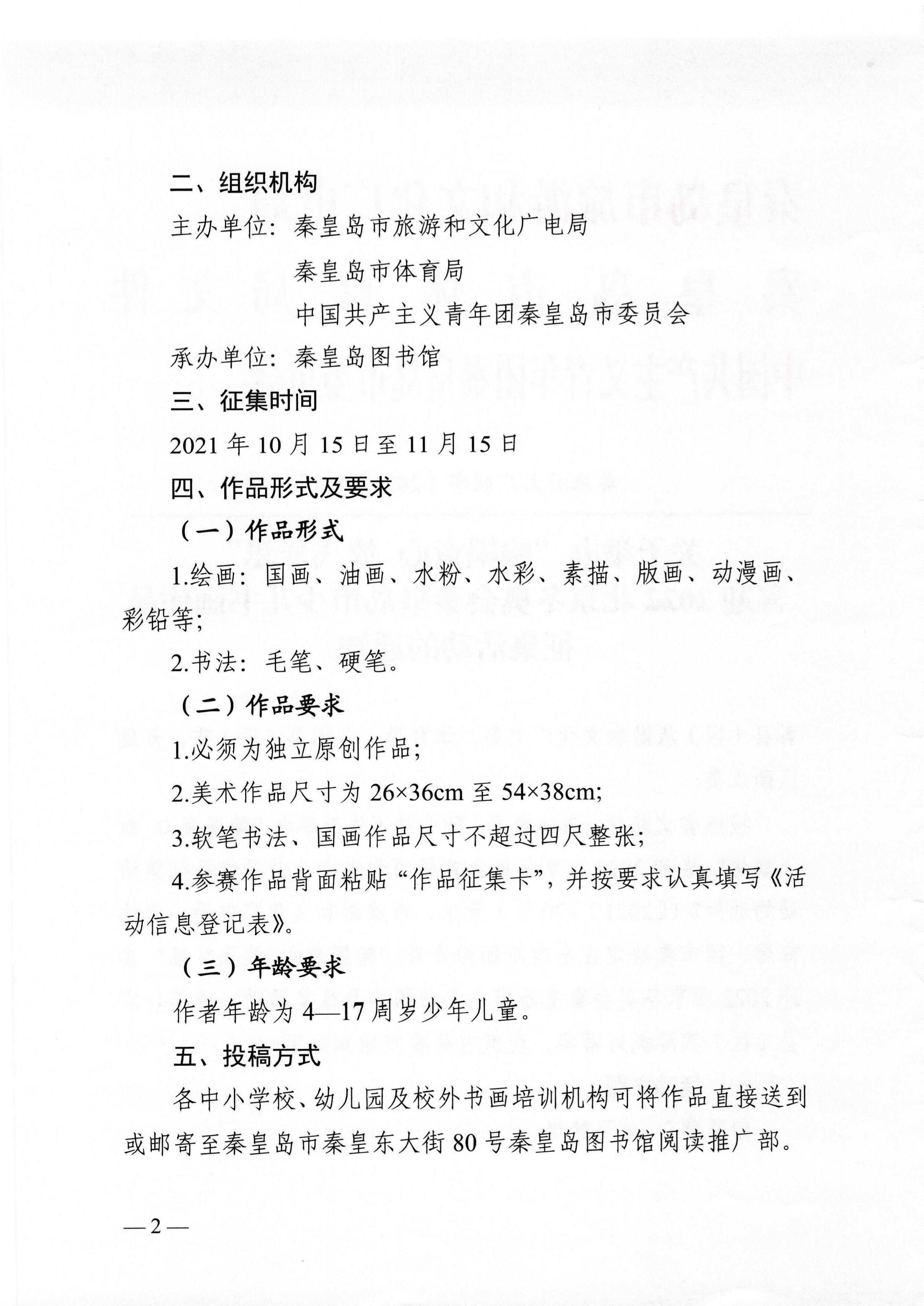 关于举办“翰墨童心 放飞梦想” 喜迎2022北京冬奥会秦皇岛市少儿书画作品 征集活动的通知