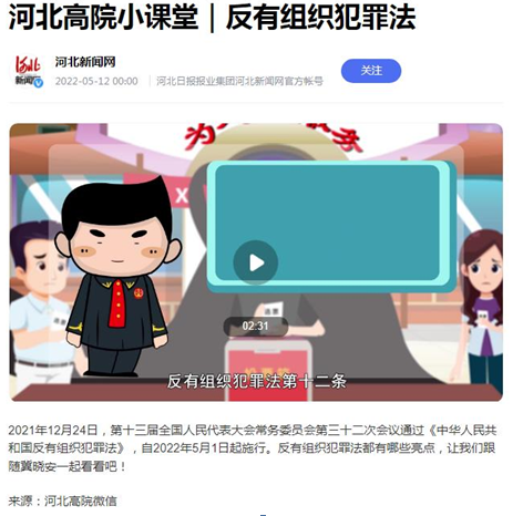 视频以动画形式生动讲解《反有组织犯罪法》,介绍了施行时间与各章节包含范围,着重讲解“依法从严惩治黑恶犯罪”“深挖黑恶势力保护伞”“严防黑恶势力深入基层”“防止未成年人遭受侵害”“防止黑恶势力死灰复燃”“保障涉案单位个人权益”等内容。