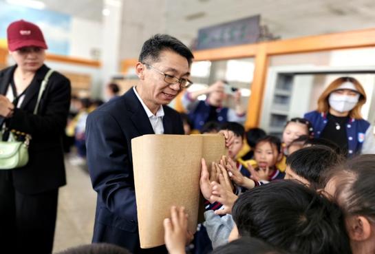 踏入图书馆,孩子们立刻被宽敞明亮的环境、整齐排列的书架以及琳琅满目的书籍所吸引,一双双好奇的眼睛四处张望,脸上洋溢着兴奋与期待。图书馆副馆长刘莹热情地向孩子们介绍图书馆的功能分区,带领他们参观参考咨询室、自然科学图书和报刊借阅室、视障图书室等区域。在参考咨询室,工作人员为孩子们讲解了一本书从出版社到读者手中的奇妙旅程,认识了什么是索书号,在古籍书库门口远观了线装古籍。“咦、什么味?”孩子们发出疑问,工作人员告诉小朋友们这是灵香草的味道,是为了给古籍防虫用的。哇,好多好多书呀!在自然科学图书和报刊借阅室,孩子们在整齐排列的书架和琳琅满目的书籍中穿梭,像一条条小鱼畅游在知识的海洋。
